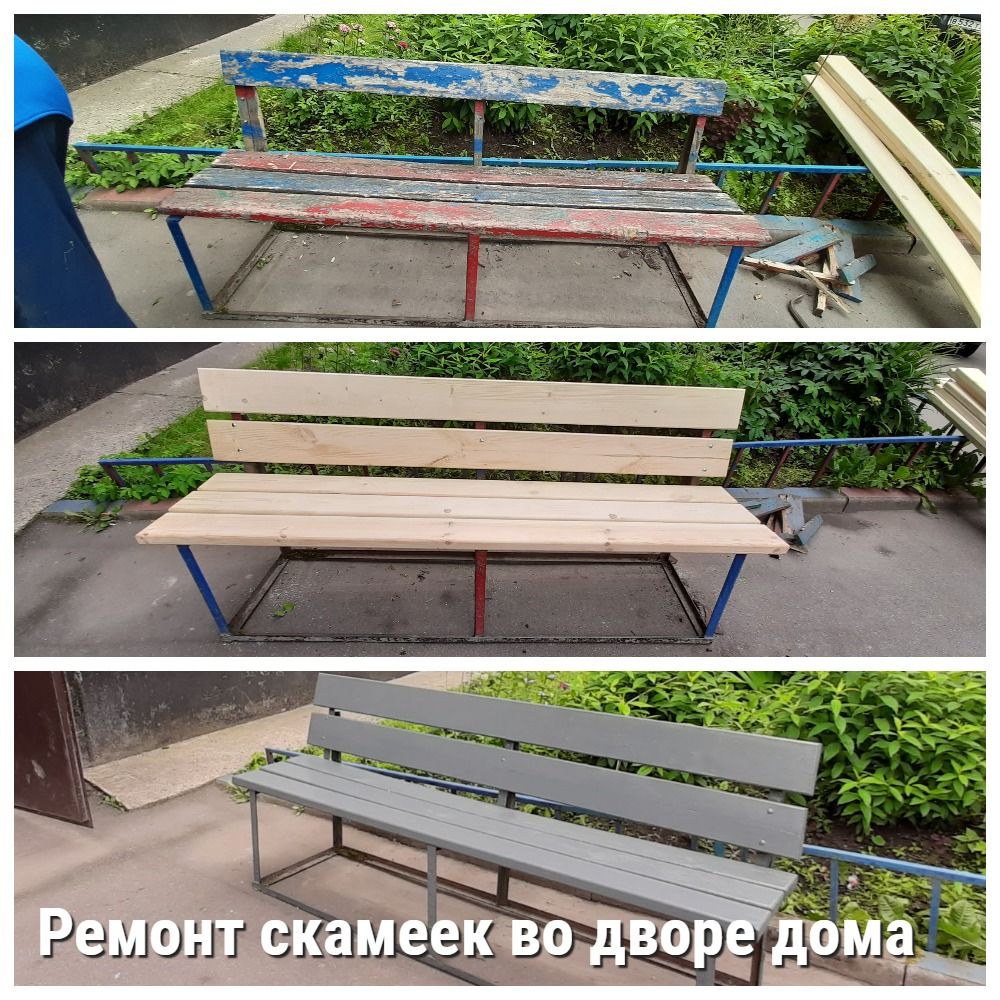 Выполнили ремонт скамеек во дворе дома пр. А.Корсунова д. 25. Теперь есть место для отдыха и занимательных бесед.