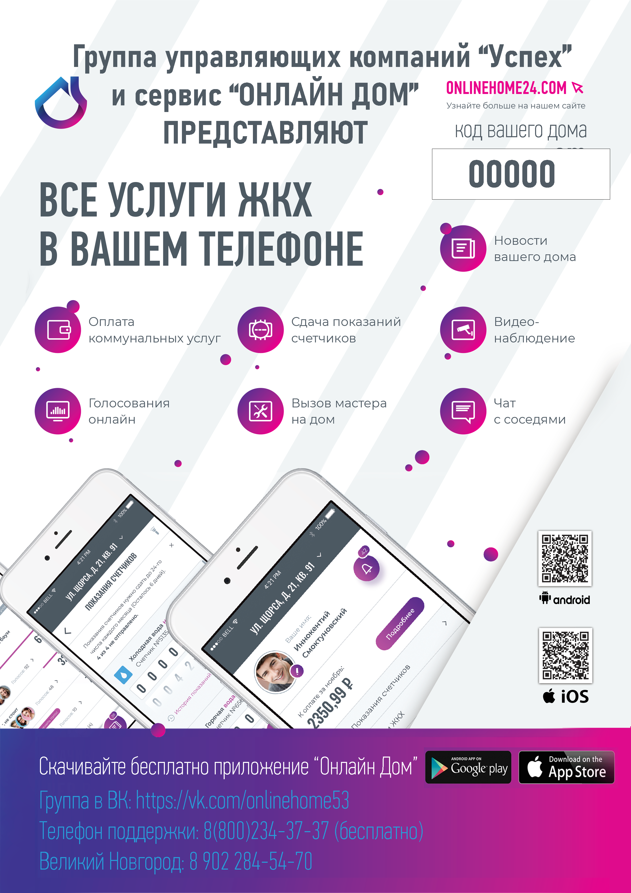 ✅ Получать информацию о проводимых или предстоящих работ в вашем доме, в том числе аварийных отключениях;