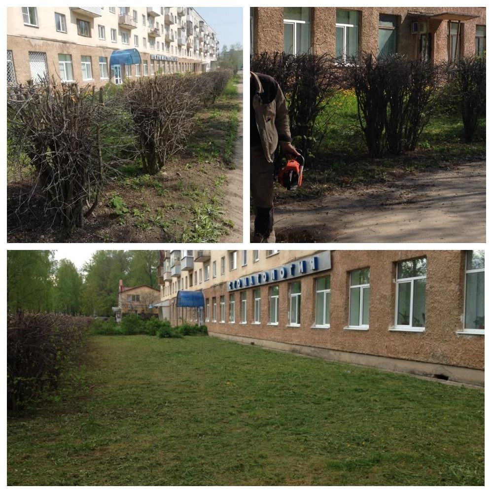 Окос травы и обрезка кустарников на территории дома ул. Свободы д. 2/6.