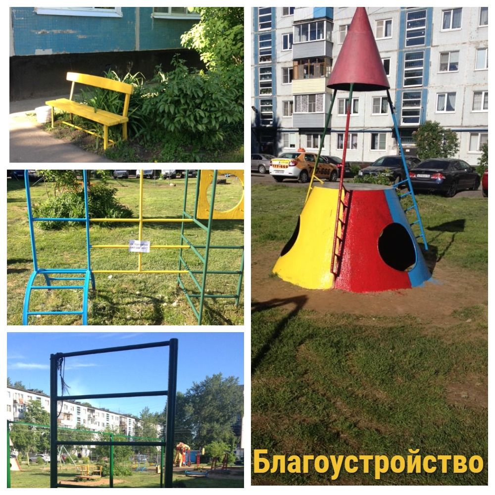 Покрасили скамейку, малые формы на территории дома пр. Корсунова д. 35 корп. 2.