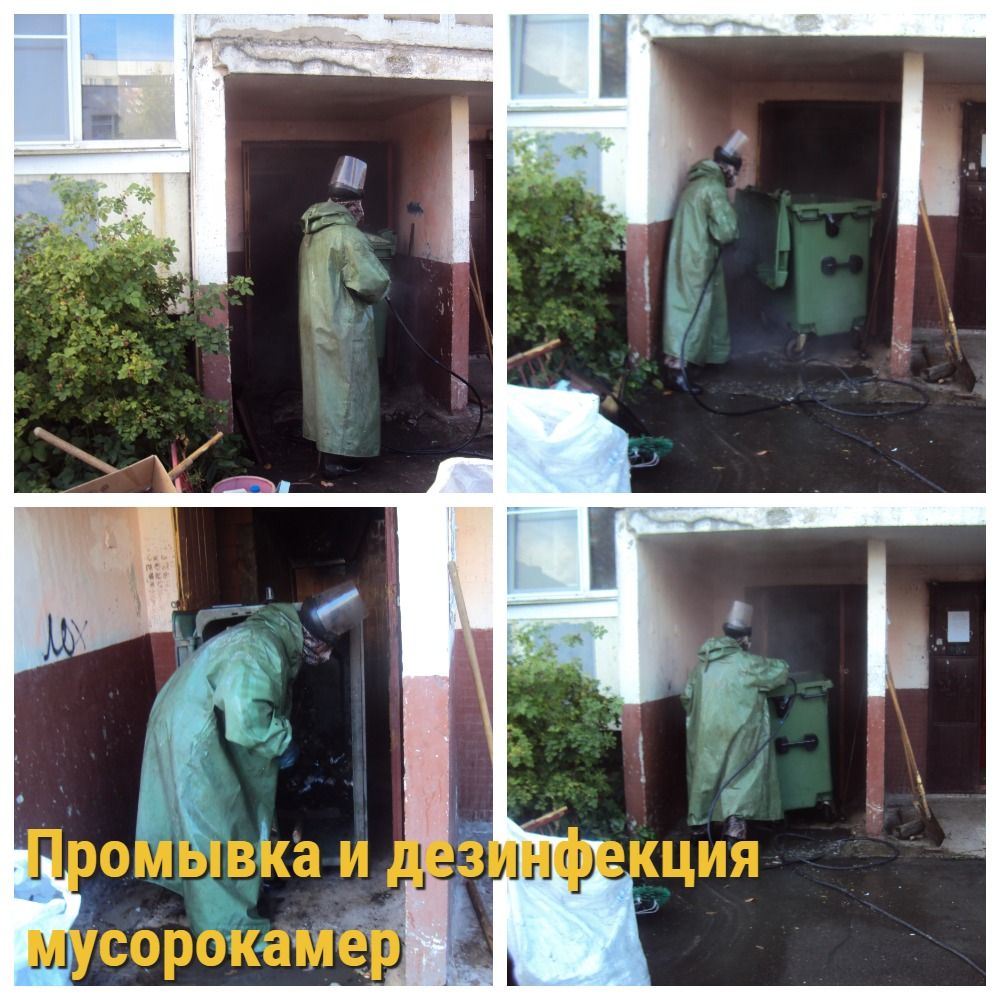 Выполнена промывка, дезинфекция мусорокамер и мусорных баков дома ул. Зелинского д. 48 корп. 3.