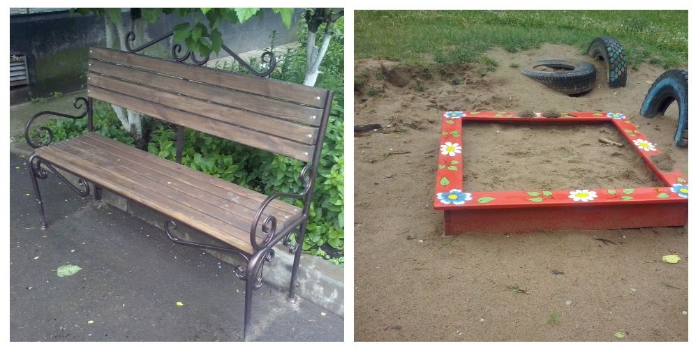 Идут работы по благоустройству дворовой территории дома Ул. Свободы д.7 – установлены скамья и песочница.