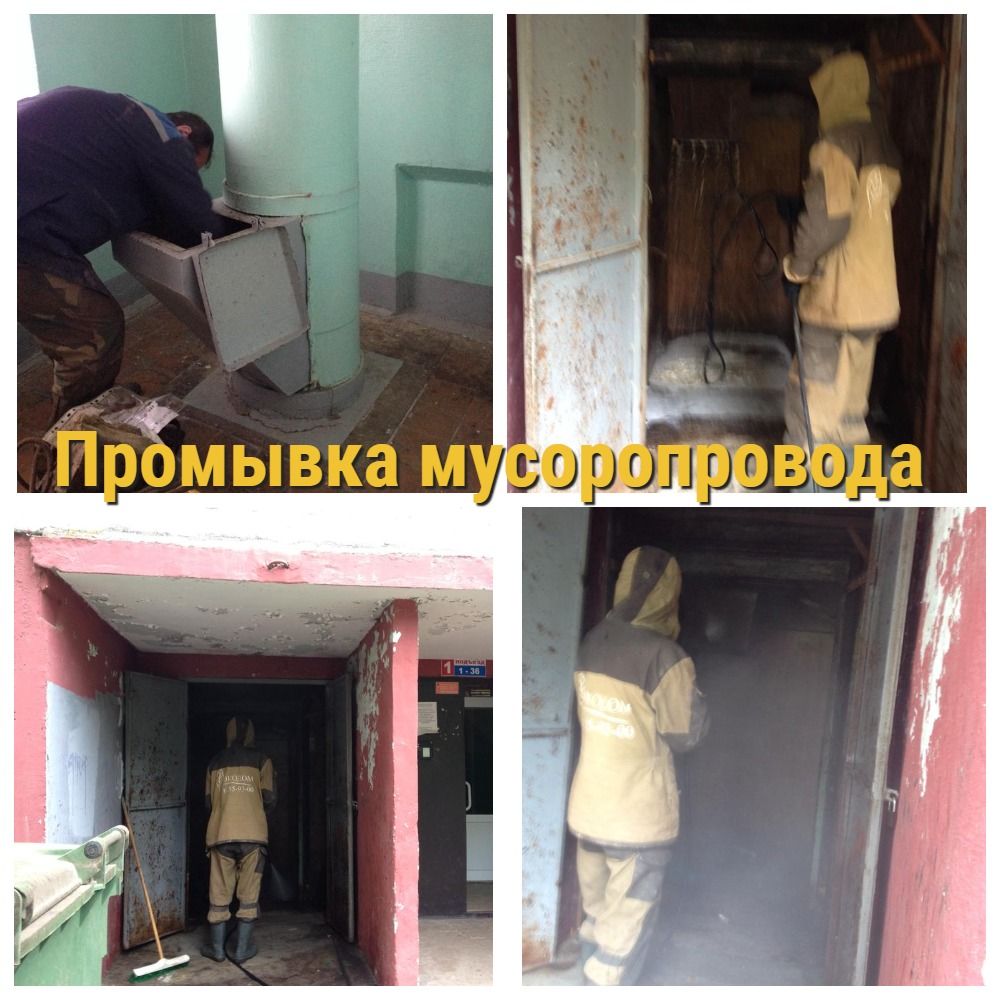 Промывка стволов и мусорокамер в доме пр. Корсунова д. 51.
